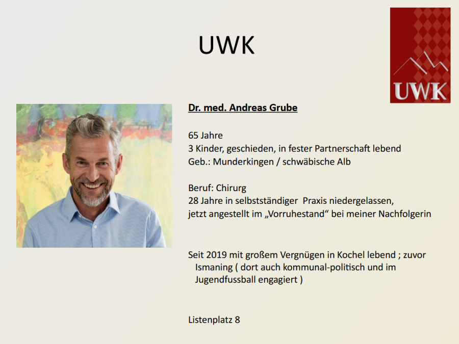bei der Kommunalwahl 2020 haben Sie uns mit 14,4 % der Stimmen zur zweitstärksten Kraft im Gemeinderat Kochel gemacht. Neben dem Ersten Bürgermeister sind wir derzeit mit zwei Gemeinderäten vertreten.