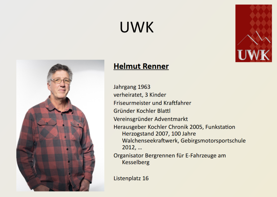 Mehr UWK heißt mehr gute Entscheidungen für uns alle. Bei der kommenden Kommunalwahl am 8. März 2026 tritt die UWK mit einer Liste aus 16 engagierten Bürgerinnen und Bürgern an. 4 Kandidatinnen und